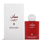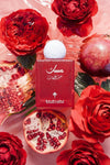 قاعدة العطر تحتوي على المسك، العنبر والرمان، مما يمنح العطر ثباتًا عالياً ورائحة تدوم طويلاً، تناسب المناسبات المختلفة مهما كانت رسميتها أو عفويتها.