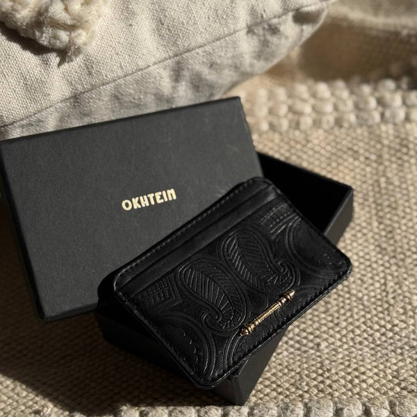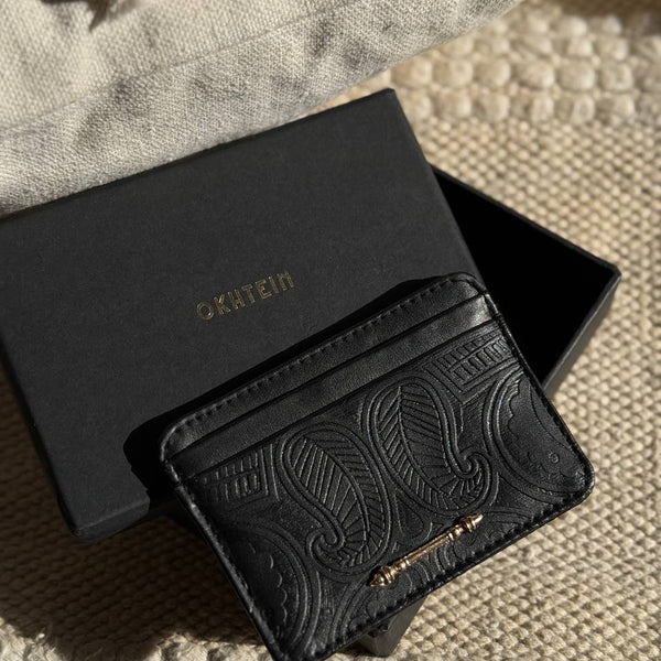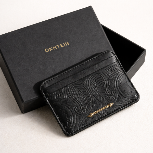 Elegant card holder from OKHTEIN, crafted from high-quality embossed leather.