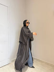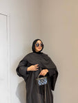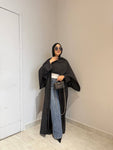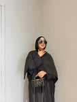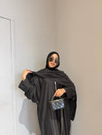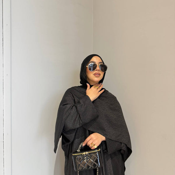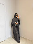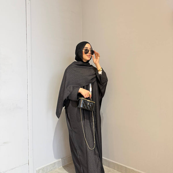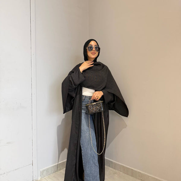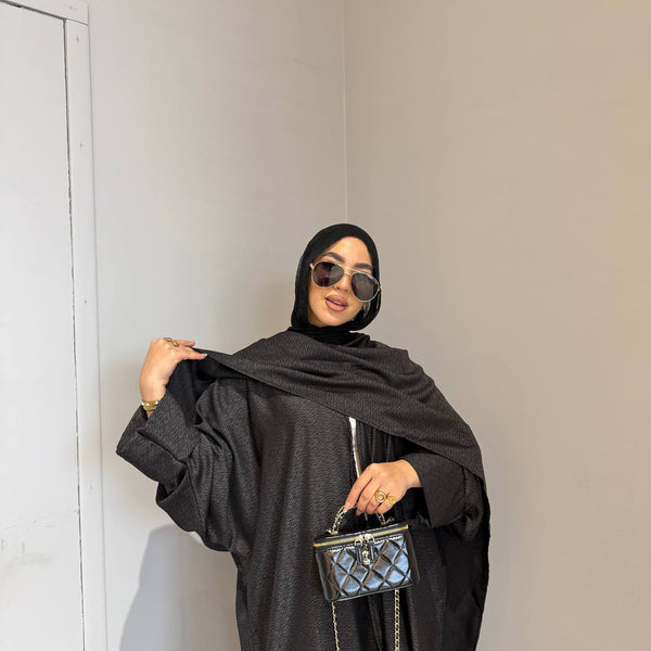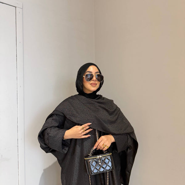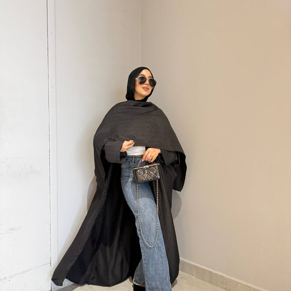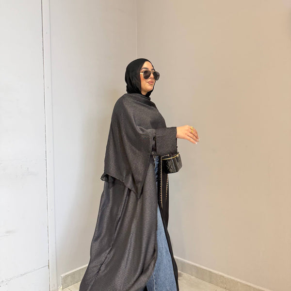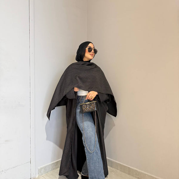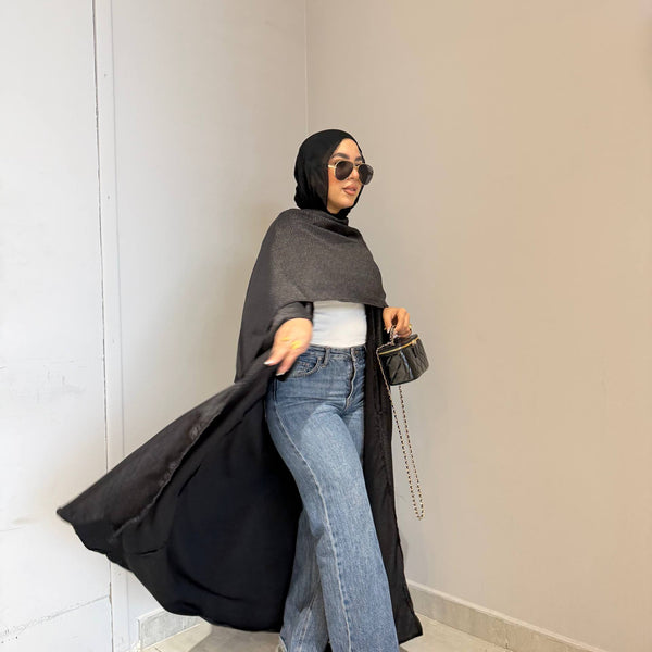 عباية شال سودا شيك جدًا بخطوط سيلفير ناعمة ✨
