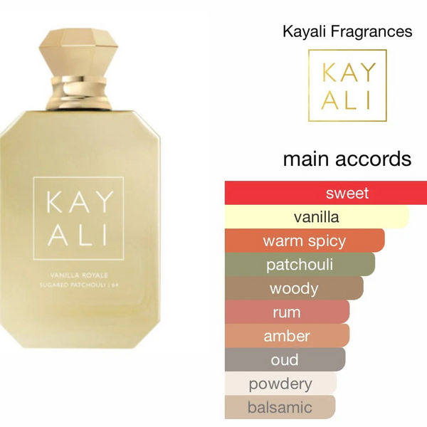 Step into opulence with Vanilla Royale Sugared Patchouli | 64, an Eau de Parfum Intense that takes vanilla to a bold, luxurious new level. A seductively irresistible blend of vanilla orchid, creamy jasmine, and golden rum unfolds into a heart of vanilla infusion, tonka bean, and smoky leather, before settling into a rich dry down of sugared patchouli, brown sugar, royal oud, and amber.