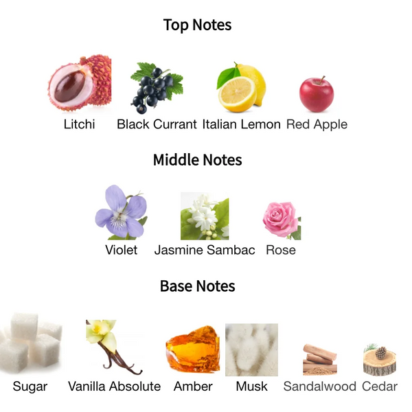 • Top Notes: Blackcurrant · Sparkling Lychee · Italian Lemon · Red Apple
